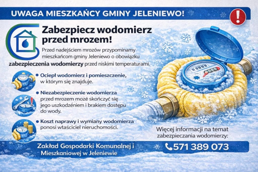 W związku z występującym okresem zimowym, przypominamy o ustawowym obowiązku zabezpieczenia urządzeń pomiarowych oraz wewnętrznych instalacji wodociągowych przed działaniem mrozu.